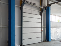Конструкция премиум-качества. В основе лежит сэндвич-панель толщиной 45 мм. Идеально подходит для эксплуатации в регионах с нестабильным климатом и перепадом температур. Ворота могут выдерживать ураганные порывы ветра – до 120 км/ч. В стандартной комплектации полотно выполнено из нержавеющей стали с защитным слоем ПУР-ПА от выгорания и растрескивания покрытия.
