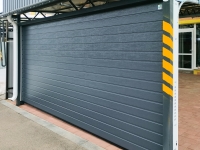 Конструкция премиум-качества. В основе лежит сэндвич-панель толщиной 45 мм. Идеально подходит для эксплуатации в регионах с нестабильным климатом и перепадом температур. Ворота могут выдерживать ураганные порывы ветра – до 120 км/ч. В стандартной комплектации полотно выполнено из нержавеющей стали с защитным слоем ПУР-ПА от выгорания и растрескивания покрытия.
