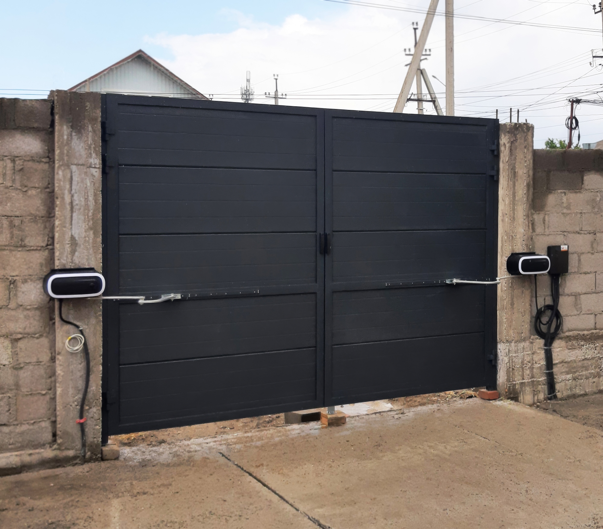 распашные ворота? Мы предлагаем полный комплекс услуг – от изготовления до установки автоматического привода.